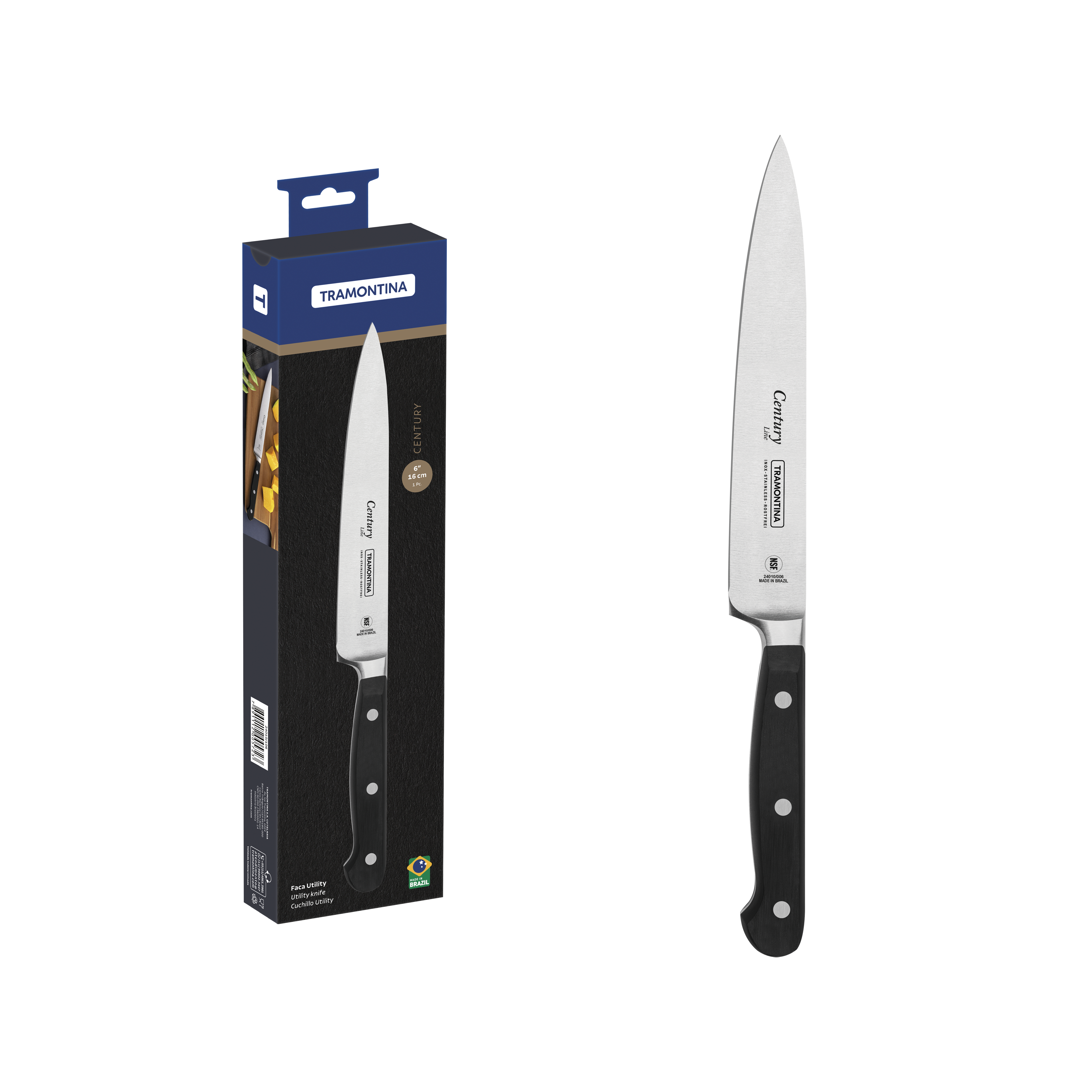 El Cuchillo Utility Tramontina Century de 6" ha sido desarrollado para ofrecer un desempeño superior en las tareas diarias de la cocina, combinando precisión, resistencia y confort en cada uso. Gracias a su diseño equilibrado y a su punta eficiente, permite trabajar con total control en diferentes tipos de ingredientes y preparaciones.