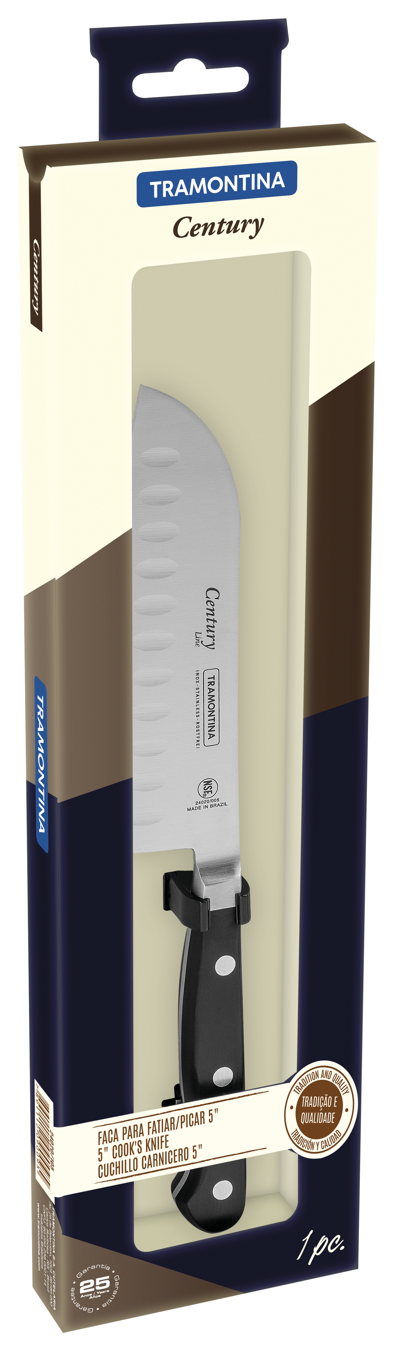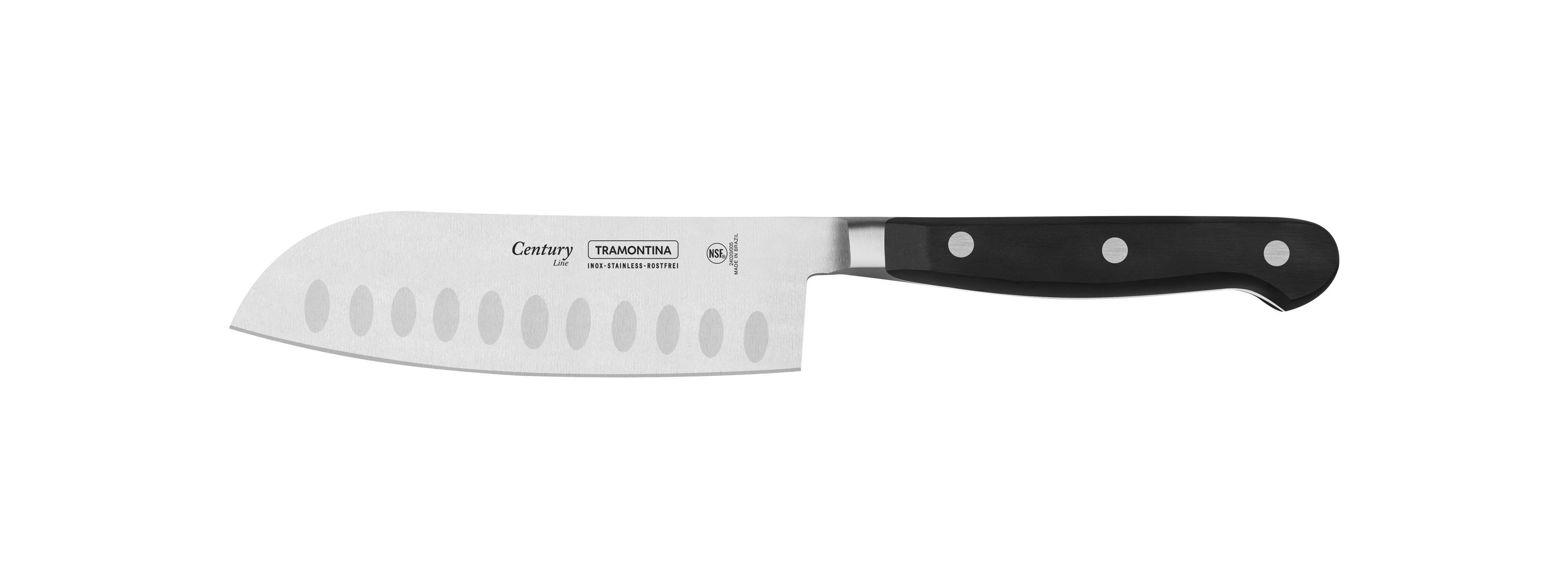 El cuchillo Santoku Tramontina Century con hoja en acero inoxidable y mango en policarbonato negro y fibra de vidrio de 5 pulgadas es la elección perfecta para quienes buscan alta performance, practicidad y calidad en la cocina.