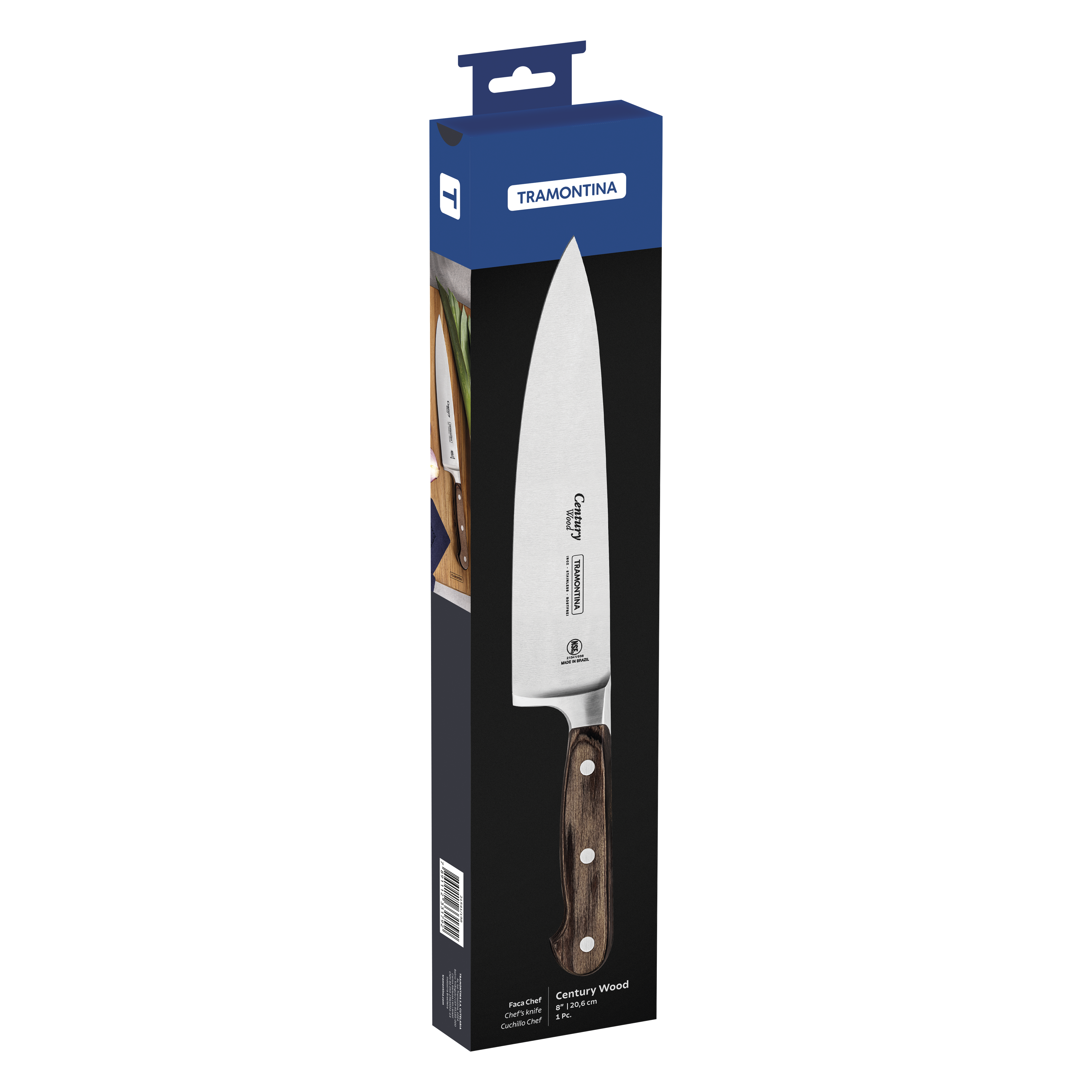 Con el cuchillo cocinero Tramontina Century Wood con hoja de acero inoxidable y mango de madera tratada castaño de 8 pulgadas tendrá en sus manos una verdadera obra maestra de la cocina.